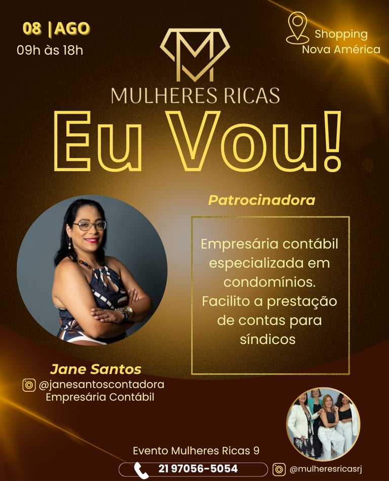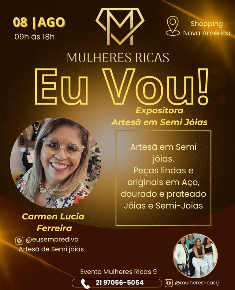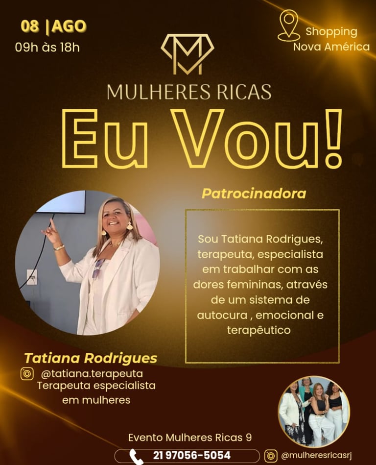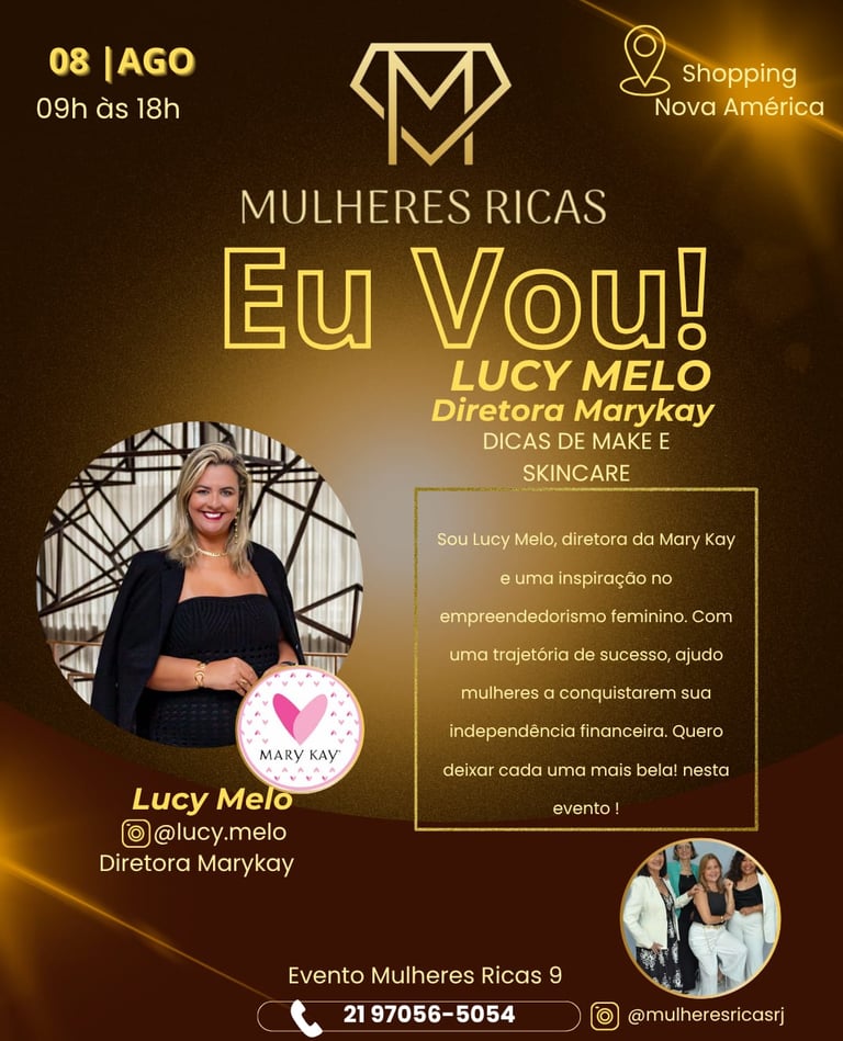 Atendendo os pedidos das participantes das últimas duas edições, estamos disponibilizando a pré-inscrição da nona edição do Mulheres Ricas RJ que será realizada no dia 8 de agosto no Shopping Nova América.